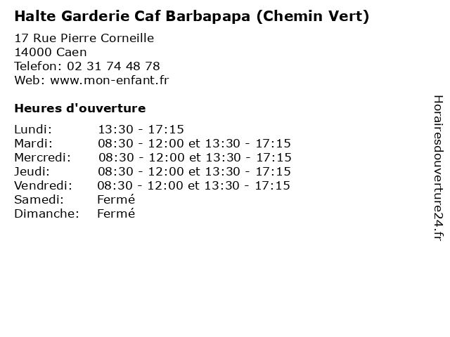 | Mercredi | 08:30-12:00 et 13:30-17:15 |
