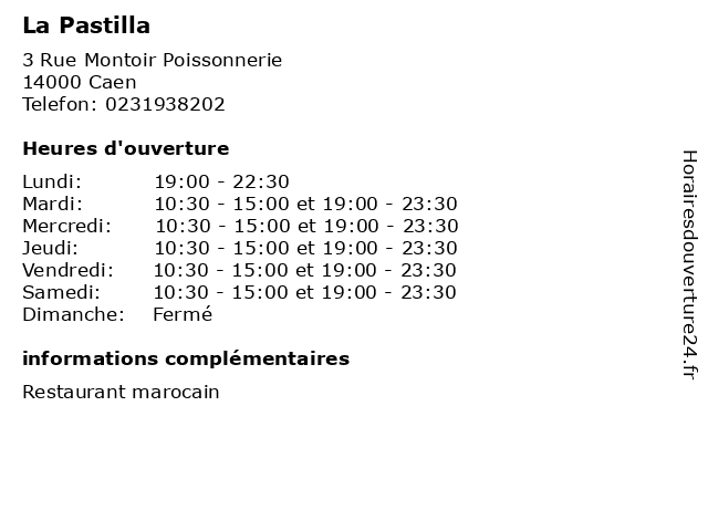 | Mardi | 10:30-15:00 et 19:00-23:30 |