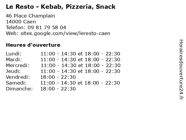| Lundi | 11:00-14:30 et 18:00-22:30 |