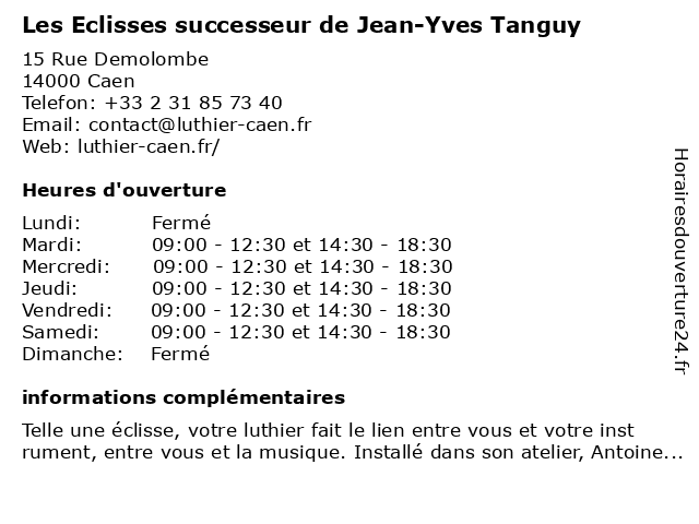 | Mardi | 09:00-12:30 et 14:30-18:30 |
