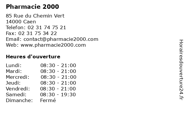 1 Pharmacie 2000 (Distance: 0,00 km) 85 rue du Chemin Vert, 14000 Caen 2000, homéopathie, médicaments, orthopédie, parapharmacie, pharmacie 2 Opticien Saint-Contest - Optic 2000 - Parc Athena (Distance: 1,47 km) 3 Rue Andrei Sakharov, 14280 Saint-Contest 2000, athena, contest, lentilles de contact, lunettes de soleil, lunettes de vue, optic, optic2000, opticien, opticien optic2000, parc, ray-ban, rayban, saint 3 Assu 2000 (Distance: 2,74 km) 39 Rue Saint-Jean, 14000 Caen 2000, assu, assurance, maison, moto, santé, services 4 Assu 2000 (Distance: 3,43 km) 36 Rue de Vaucelles, 14000 Caen 2000, assu, assurance, maison, moto, santé, services 5 Assu 2000 (Distance: 4,56 km) - Place du Cafe des Images, 14200 Hérouville Saint-Clair 2000, assu, assurance, maison, moto, santé, services 6 Optic 2000 - Opticien Hérouville-Saint-Clair (Distance: 4,98 km) Place Saint-Clair, 14200 Hérouville-Saint-Clair 2000, clair, hérouville, lentilles, lentilles de contact, lunettes, lunettes de soleil, lunettes de vue, optic, optic 2000, opticien, opticien optic 2000, saint  |