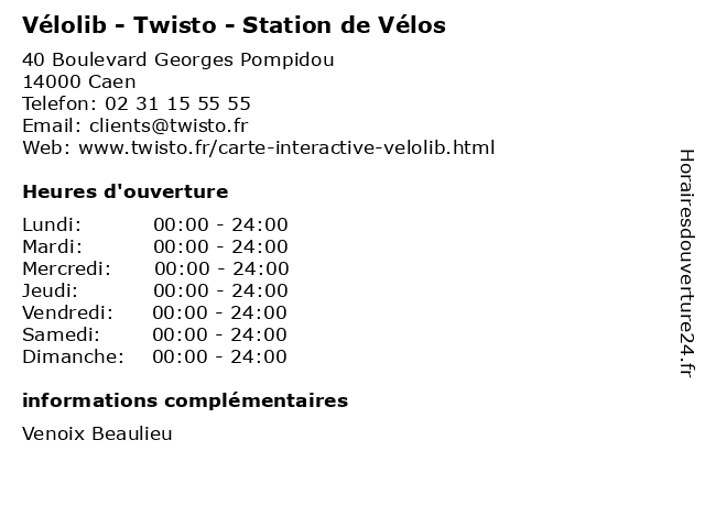 1 Vélolib - Twisto - Station de Vélos (Distance: 1,33 km) 89 Rue du Chemin Vert, 14000 Caen abonnement, de, libre service, station, trajets, transport, twisto, vélolib, vélos 2 Vélolib - Twisto - Station de Vélos (Distance: 1,94 km) 26 Place de l’Ancienne Boucherie, 14000 Caen abonnement, de, libre service, station, trajets, transport, twisto, vélolib, vélos 3 Vélolib - Twisto - Station de Vélos (Distance: 2,26 km) 1 Place Louis Gouillard, 14000 Caen abonnement, de, libre service, station, trajets, transport, twisto, vélolib, vélos 4 Vélolib - Twisto - Station de Vélos (Distance: 2,26 km) 14 Avenue Albert Sorel, 14000 Caen abonnement, de, libre service, station, trajets, transport, twisto, vélolib, vélos 5 Vélolib - Twisto - Station de Vélos (Distance: 2,28 km) 4 avenue Maréchal Montgomery, 14000 Caen abonnement, de, libre service, station, trajets, transport, twisto, vélolib, vélos 6 Vélolib - Twisto - Station de Vélos (Distance: 2,72 km) 3 Place Pierre Bouchard, 14000 Caen abonnement, de, libre service, station, trajets, transport, twisto, vélolib, vélos |