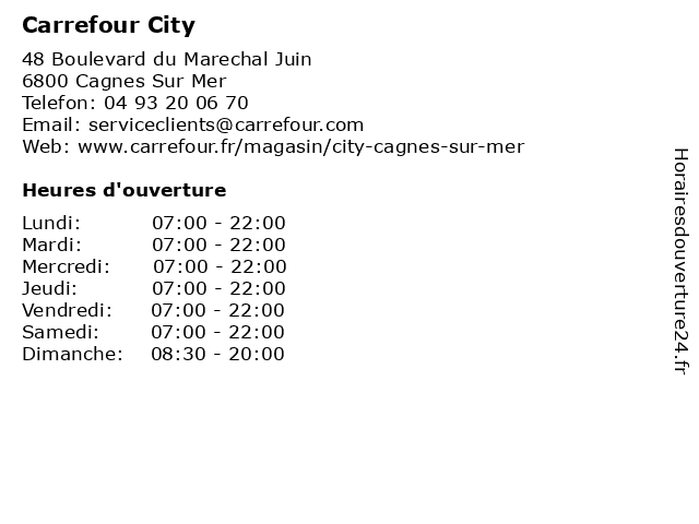 | Samedi | 07:00-22:00 |