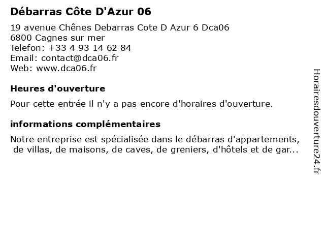 1 Débarras Côte D'Azur 06 (Distance: 1,82 km) 65 Chemin du Vallon des Vaux, 06800 Cagnes-sur-Mer 06, côte, d'azur, débarras 2 3 ASS - Azur Secrétariat Services (Distance: 0,32 km) 60 avenue de Nice, 06800 Cagnes-sur-Mer ass, azur, bureaux, domiciliation, location, secrétariat, services 4 Gtm 06 (Distance: 0,42 km) 37 avenue cyrile besset, 06800 Cagnes-sur-Mer 06, conception, construction, entretien, goudronnage, gtm, gtm06, public, réalisation, terrassement, travaux 5 Côte et Sud (Distance: 0,57 km) 45 Promenade De La Plage, 06800 Cagnes-sur-Mer bar, bistro, bistrot, brasserie, café, côte, et, pub, restaurant, restauration, resto, sud 6 Les Villas De La Côte (Distance: 0,61 km) 10 Avenue de la Serre, 06800 Cagnes-sur-Mer agence, côte, de, gestion, immobilier, la, les, location, transaction, vente, villas |