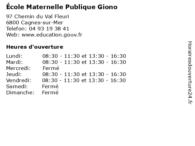 | Mardi | 08:30-11:30 et 13:30-16:30 |