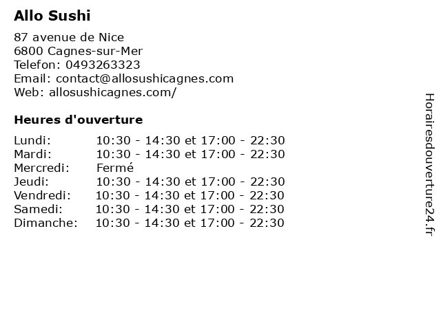 | Mardi | 10:30-14:30 et 17:00-22:30 |