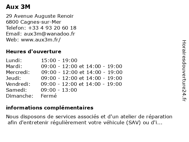1 Aux Saveurs de Maé (Distance: 1,33 km) 10 Avenue des Oliviers, 06800 Cagnes-sur-Mer aux, de, delphine, freimout, khan, mae, maé, restaurants, saveurs, sultana 2 Restaurant Aux Planches (Distance: 1,45 km) 3 Promenade de la Plage, 06800 Cagnes-sur-Mer aux, bar, bistro, bistrot, brasserie, café, planches, restaurant, restauration 3 La Halle aux Chaussures (Distance: 3,38 km) 1 avenue Eugène Donadeï, 06700 Saint-Laurent-du-Var accessoires, aux, chaussures, enfants, femme, halle, homme, la, magasin, mode, vêtements 4 La Halle aux Chaussures (Distance: 3,60 km) 1573 route nationale 7, 06270 Villeneuve Loubet accessoires, adultes, aux, chaussures, enfants, halle, la, magasin 5 Shurgard - Accès aux Boxs (Distance: 3,86 km) 56 Avenue des Cavaliers, 06270 Villeneuve-Loubet accès, aux, boxs, d'accès, déménagement, entreprises, heures, self stockage, shurgard, stockage d'archives 6 Shurgard - Accès aux Boxs (Distance: 5,77 km) 48 Boulevard René Cassin, 6200 Nice accès, aux, boxs, d'accès, déménagement, entreprises, heures, self stockage, shurgard, stockage d'archives |