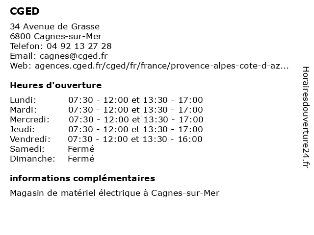 Lundi | 07:30-12:00 et 13:30-17:00 |