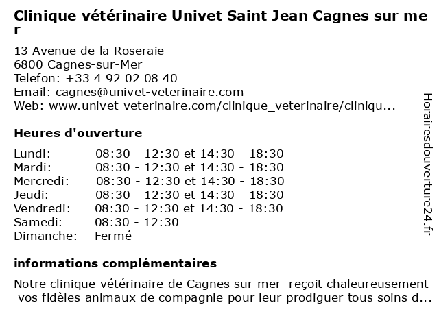 Termes de recherche pour Clinique vétérinaire Univet Saint Jean Cagnes sur mer:sur, mer, saint, cagnes, jean, clinique, veterinaire, univet |