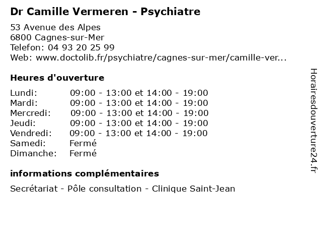 | Vendredi | 09:00-13:00 et 14:00-19:00 |
