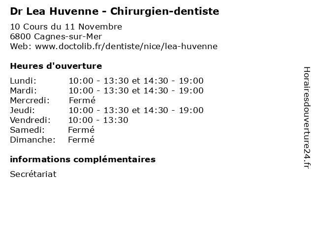 | Lundi | 10:00-13:30 et 14:30-19:00 |