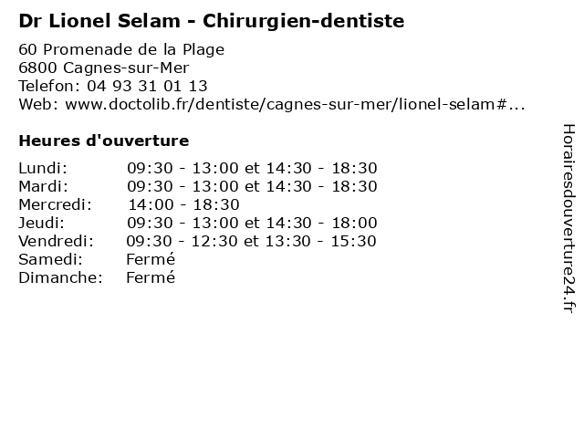 | Lundi | 09:30-13:00 et 14:30-18:30 |