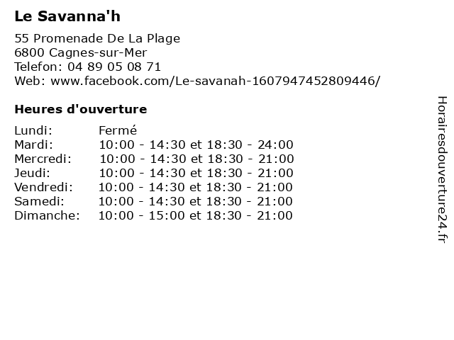 | Mardi | 10:00-14:30 et 18:30-24:00 |