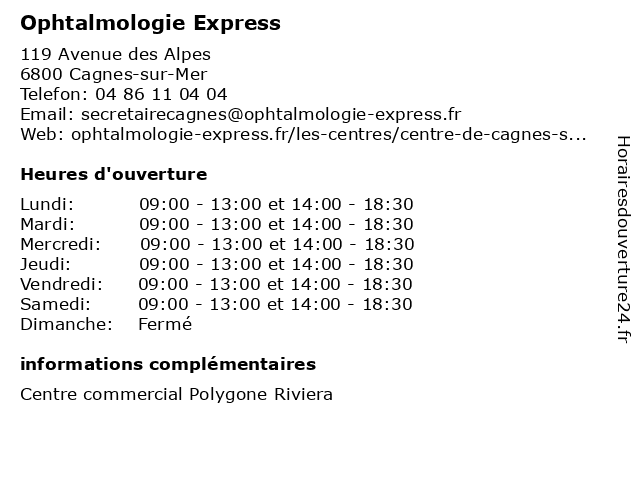 | Lundi | 09:00-13:00 et 14:00-18:30 |