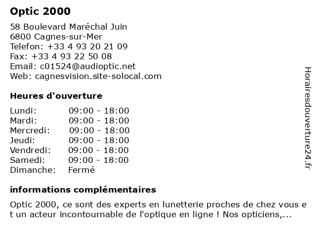 6 Optic 2000 (Distance: 15,15 km) 23 Avenue de Verdun, 06500 Mougins 2000, lentilles, lunettes, montures optiques, optic, opticien, opticiens, verres |