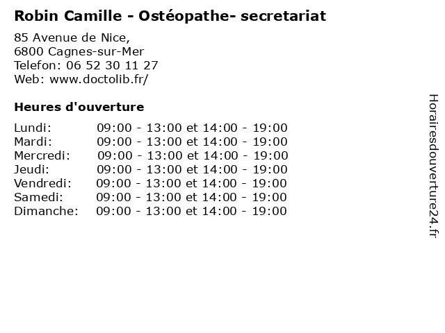 | Lundi | 09:00-13:00 et 14:00-19:00 |