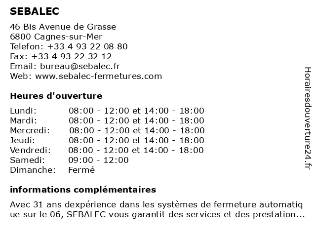 | Lundi | 08:00-12:00 et 14:00-18:00 |