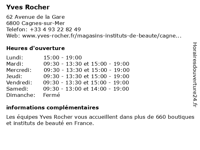 | Samedi | 09:30-13:00 et 14:00-19:00 |