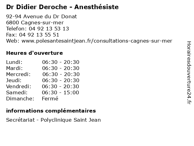 | Vendredi | 06:30-20:30 |