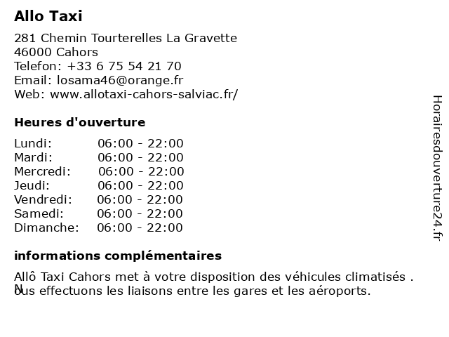 | Samedi | 06:00-22:00 |