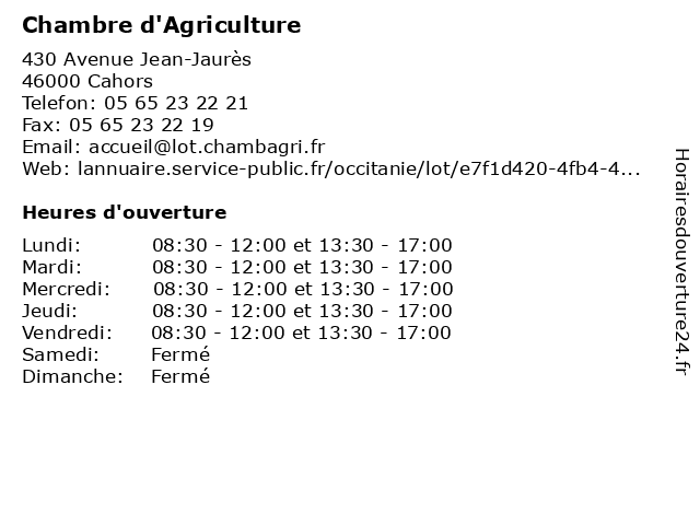 | Lundi | 08:30-12:00 et 13:30-17:00 |