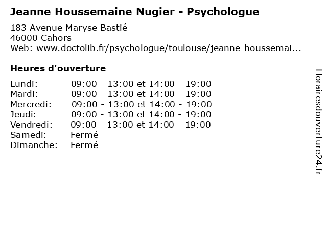 | Mardi | 09:00-13:00 et 14:00-19:00 |