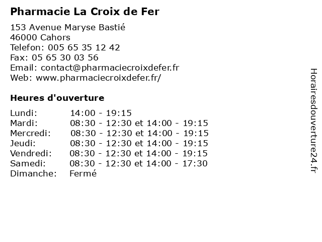 | Mardi | 08:30-12:30 et 14:00-19:15 |