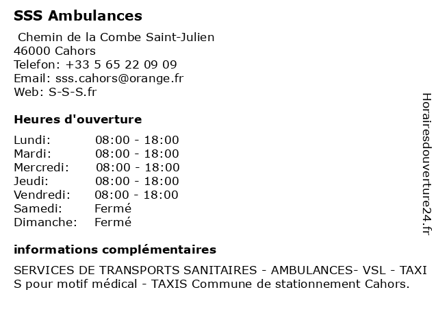 1 Ambulances et Taxi Atea (Distance: 1,47 km) 769 Chemin de Belle Croix, 46000 Cahors ambulances, atea, et, taxi 2 Harmonie Ambulance (Distance: 4,85 km) 306 chemin de la Sabliére, 46000 Cahors agence, ambulance, ambulances, harmonie, médical, services, transports 3 Ambulances Roguet (Distance: 21,89 km) 12 Avenue Maréchal Bessières, 46220 Prayssac ambulances, roguet 4 Harmonie Ambulance (Distance: 22,61 km) - rue du Caillou, 46220 Prayssac agence, ambulance, ambulances, harmonie, médical, services, transports 5 Ambulances Clemente (Distance: 40,58 km) 30 bis Avenue de Villeneuve, 47500 Monsempron-Libos ambulances, clemente 6 Harmonie Ambulance (Distance: 44,10 km) 40 Rue Benjamin Franklin, 82200 Moissac agence, ambulance, ambulances, harmonie, médical, services, transports |