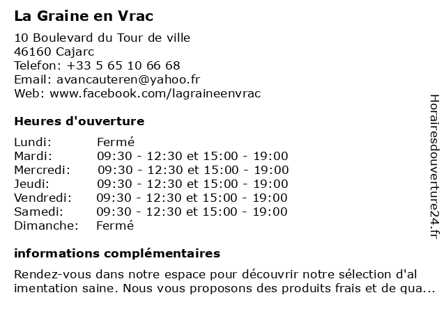 Termes de recherche pour La Graine en Vrac:en, la, vrac, graine |
