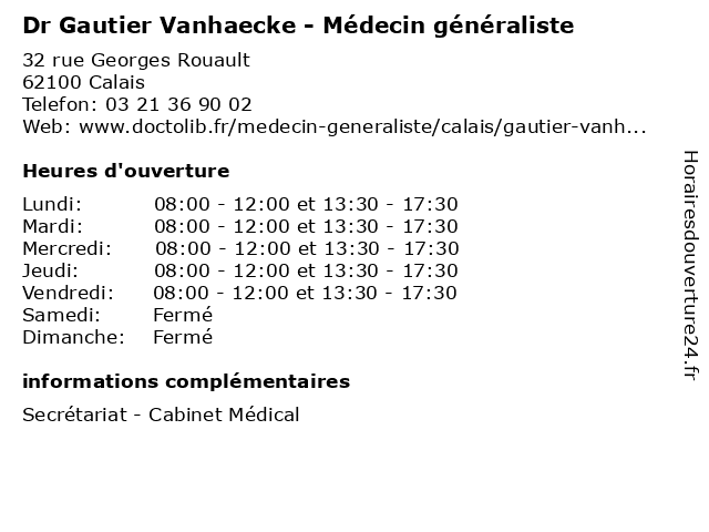 | Lundi | 08:00-12:00 et 13:30-17:30 |