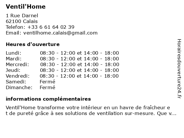 | Lundi | 08:30-12:00 et 14:00-18:00 |
