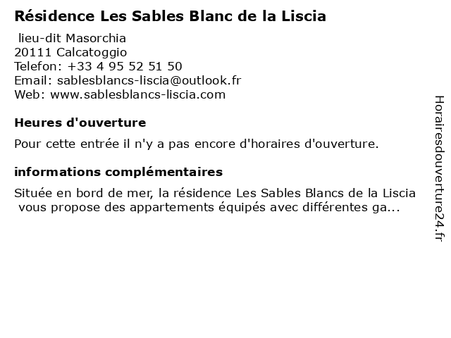 | Appeler Résidence Les Sables Blanc de la Liscia | |