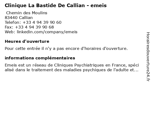 | Appeler Clinique La Bastide De Callian - emeis | |