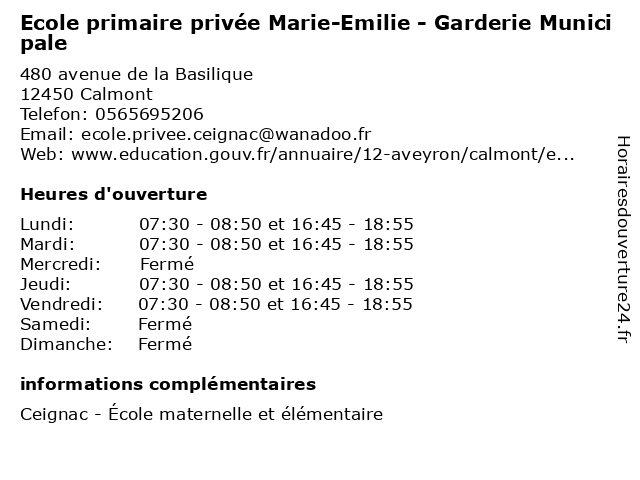 1 Ecole primaire privée Marie-Emilie (Distance: 0,00 km) 480 avenue de la Basilique, 12450 Calmont cio, collège, ecole, emilie, enseignement, lycée, marie, maternelle, nationale, orientation, primaire, privé, privée, public, publique, école, éducation, élémentaire 2 Ecole privée Saint-Jean - Maternelles (Distance: 3,51 km) 16 rue des Ecoliers, 12450 Luc-la-Primaube cio, collège, ecole, enseignement, jean, lycée, marie, maternelle, maternelles, nationale, orientation, primaire, privé, privée, public, publique, saint, sainte, école, éducation 3 Ecole privée Saint-Jean - Primaires (Distance: 3,51 km) 16 rue des Ecoliers, 12450 Luc-la-Primaube cio, collège, ecole, enseignement, jean, lycée, marie, maternelle, nationale, orientation, primaire, primaires, privé, privée, public, publique, saint, sainte, école, éducation 4 Ecole primaire privée Sainte-Marie (Distance: 5,76 km) - Le Bourg, 12120 Cassagnes-Bégonhès cio, collège, ecole, enseignement, lycée, marie, maternelle, nationale, orientation, primaire, privé, privée, public, publique, sainte, école, éducation, élémentaire 5 Ecole primaire privée Saint-Charles (Distance: 6,74 km) 6 rue du Stade, 12450 Flavin charles, cio, collège, ecole, enseignement, lycée, marie, maternelle, nationale, orientation, primaire, privé, privée, public, publique, saint, sainte, école, éducation, élémentaire 6 Ecole primaire privée Saint-Dominique (Distance: 7,36 km) 77 rue du Stade, 12160 Baraqueville cio, collège, dominique, ecole, enseignement, lycée, maternelle, nationale, orientation, primaire, privé, privée, public, publique, saint, école, éducation, élémentaire |