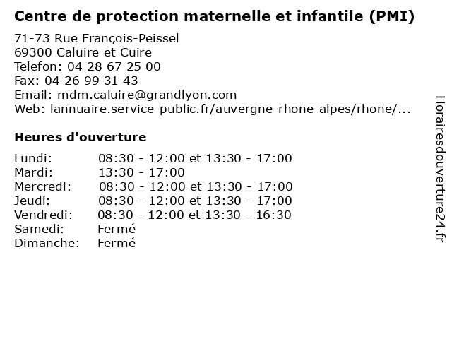 1 Centre de protection maternelle et infantile (PMI) (Distance: 2,26 km) 51 Rue Deleuvre, 69004 Lyon centre, conseils, de, et, infantile, maternelle, parents, pmi, protection, prévention, puéricultrice, pédiatre 2 Centre de protection maternelle et infantile (PMI) (Distance: 2,92 km) 52 Avenue du Maréchal Foch, 69006 Lyon centre, conseils, de, et, infantile, maternelle, parents, pmi, protection, prévention, puéricultrice, pédiatre 3 Centre de Protection Maternelle et Infantile (PMI) (Distance: 3,60 km) 74 Cours Émile-Zola, 69100 Villeurbanne bébé, centre, de, et, infantile, maternelle, parents, pmi, protection, puéricultrice, pédiatre, vaccins 4 Centre de protection maternelle et infantile (PMI) (Distance: 3,65 km) 15 Rue de Bourgogne, 69009 Lyon centre, conseils, de, et, infantile, maternelle, parents, pmi, protection, prévention, puéricultrice, pédiatre 5 Centre de protection maternelle et infantile (PMI) (Distance: 3,73 km) 8 Place Abbé Pierre, 69009 Lyon centre, conseils, de, et, infantile, maternelle, parents, pmi, protection, prévention, puéricultrice, pédiatre 6 Centre de protection maternelle et infantile (PMI) (Distance: 4,16 km) 149 Rue Pierre Corneille, 69000 Lyon centre, conseils, de, et, infantile, maternelle, parents, pmi, protection, prévention, puéricultrice, pédiatre |