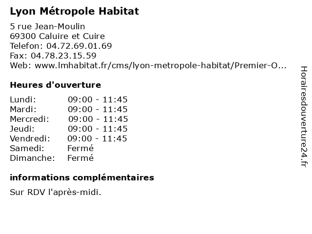 1 Lyon Métropole Habitat (Distance: 3,62 km) 8 rue Transversale, 69009 Lyon agence, habitat, lyon, métropole, social 2 Lyon Métropole Habitat (Distance: 3,80 km) 43 bis cours de la République, 69100 Villeurbanne agence, habitat, lyon, métropole, social 3 Lyon Métropole Habitat (Distance: 4,20 km) 5 place des rendez-vous, 69270 Fontaines-sur-Saône agence, habitat, lyon, métropole, social 4 Lyon Métropole Habitat (Distance: 5,40 km) 152 Grande rue de la Guillotière, 69007 Lyon agence, habitat, lyon, métropole, social 5 Lyon Métropole Habitat (Distance: 6,85 km) 14 avenue Georges-Dimitrov, 69120 Vaulx-en-Velin agence, habitat, lyon, métropole, social 6 Lyon Métropole Habitat (Distance: 8,95 km) 10 avenue Edouard-Herriot, 69500 Bron agence, habitat, lyon, métropole, social |