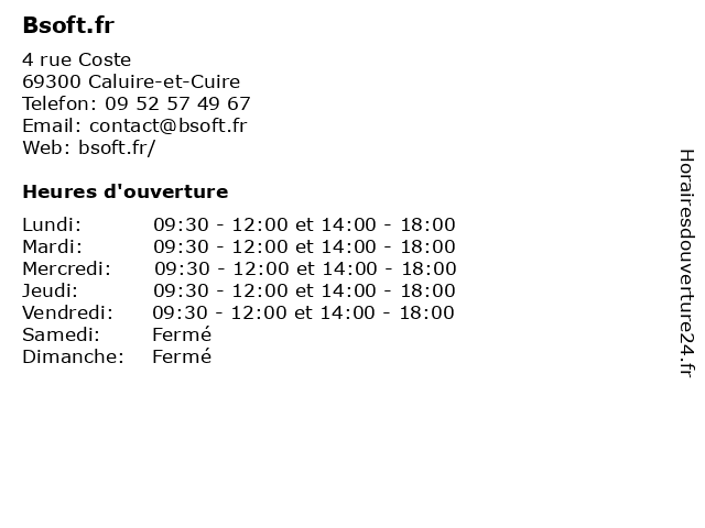 | Lundi | 09:30-12:00 et 14:00-18:00 |