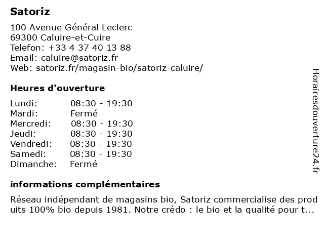 1 Satoriz (Distance: 6,79 km) 11 Rue Des Rosiéristes, 69410 Champagne au Mont d’or bio, boulangerie, restaurant, satoriz 4 Satoriz (Distance: 28,89 km) 1486 route de Chasse, 38200 Seyssuel alimentation, bio, diététique, epicerie, fruits, légumes, nature, pain, satoriz, soins, thé 6 |