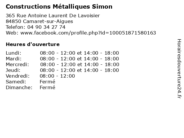 | Lundi | 08:00-12:00 et 14:00-18:00 |