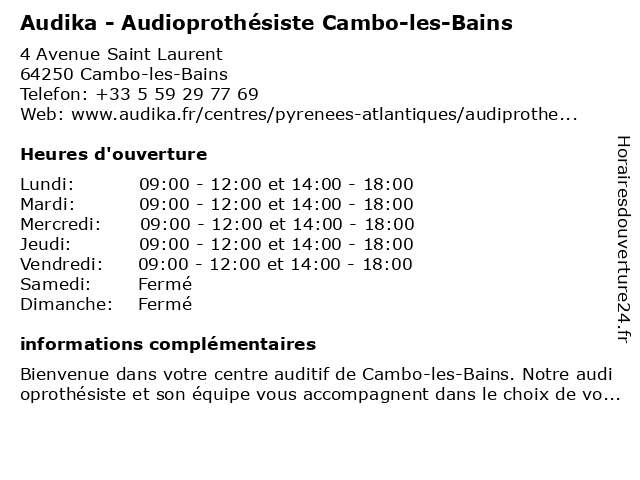 Termes de recherche pour Audika - Audioprothésiste Cambo-les-Bains:les, bains, cambo, appareil auditif, audika, audioprothésiste, specialiste audition, audiologiste, centre auditif |