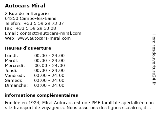 2 Autocars le Basque Bondissant (Distance: 18,41 km) 24 Avenue du Maréchal Foch, 64200 Biarritz autocars, basque, bondissant, le 3 4 Autocars Souletins (Distance: 44,36 km) 26 Rue René Elissabide, 64130 Mauléon-Licharre autocars, souletins |