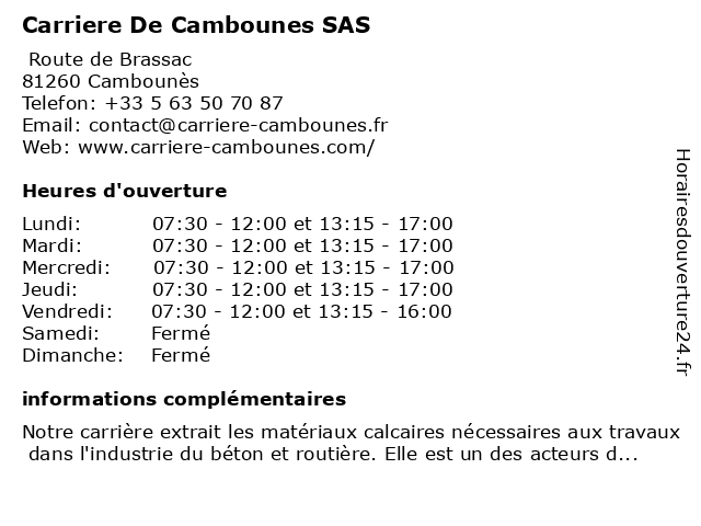 Termes de recherche pour Carriere De Cambounes SAS:de, sas, carriere, cambounès |