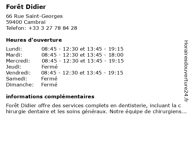 | Lundi | 08:45-12:30 et 13:45-19:15 |