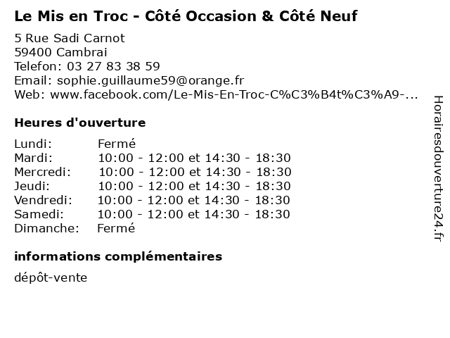 | Mercredi | 10:00-12:00 et 14:30-18:30 |