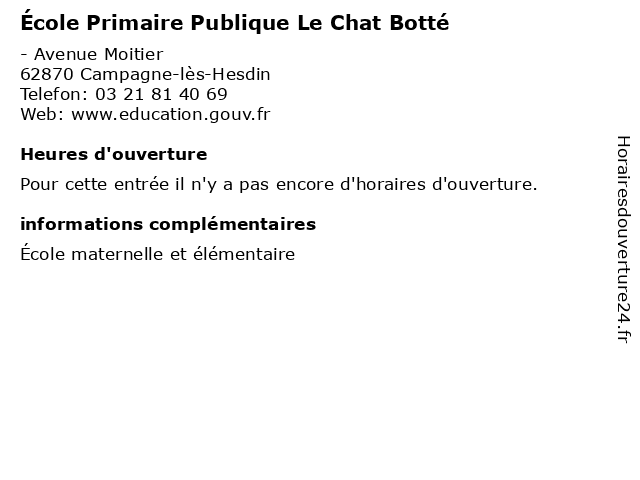 | Appeler École Primaire Publique Le Chat Botté | |