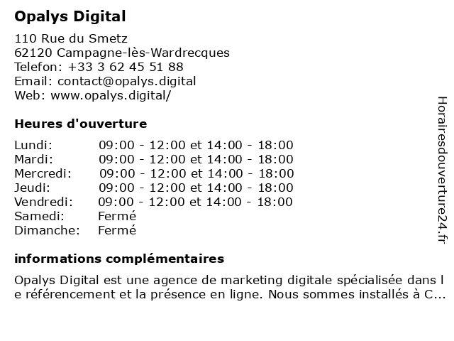 Lundi | 09:00-12:00 et 14:00-18:00 |