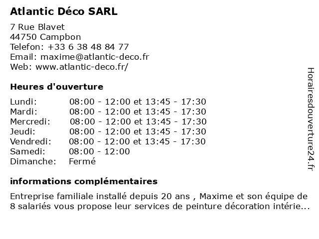Termes de recherche pour Atlantic Déco SARL:sarl, atlantic, déco |