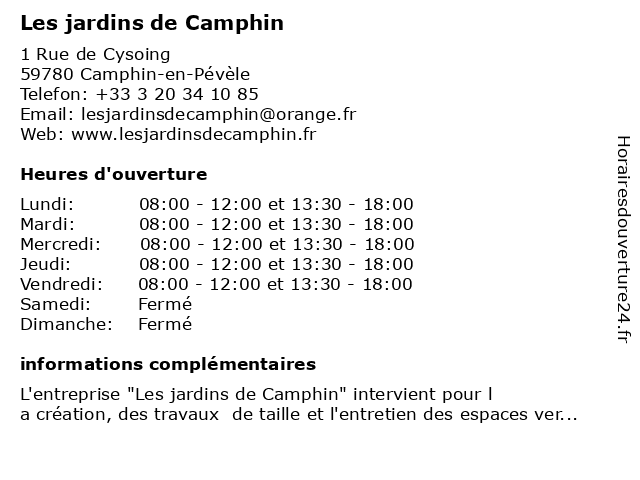 | Lundi | 08:00-12:00 et 13:30-18:00 |