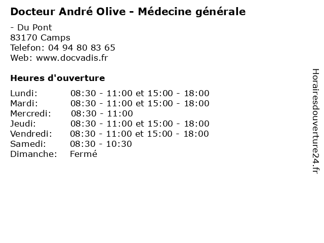 | Lundi | 08:30-11:00 et 15:00-18:00 |