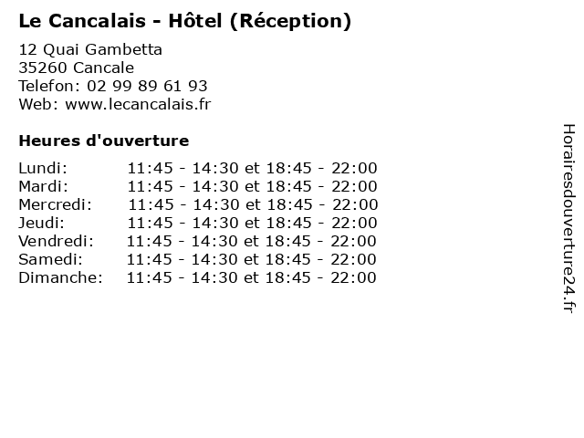 | Dimanche | 11:45-14:30 et 18:45-22:00 |
